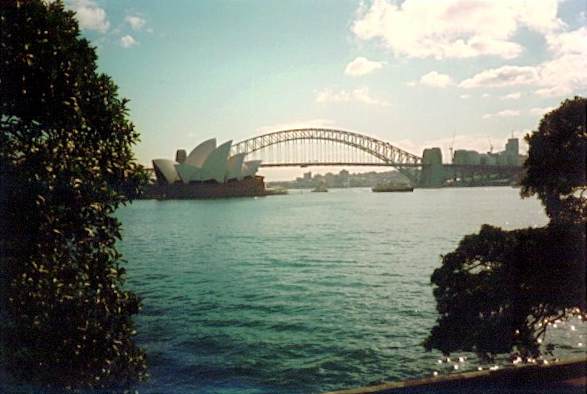 Sydney harbour bridge and opera house, taken from the botanical gardens.